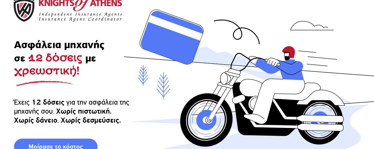 Έχεις έως 12 μηνιαίες δόσεις για την ασφάλεια της μηχανής σου, χωρίς πιστωτική, χωρίς δάνειο και χωρίς δεσμεύσεις.