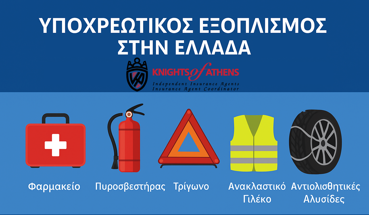 Η ύπαρξη και η σωστή συντήρηση του υποχρεωτικού εξοπλισμού είναι απαραίτητη και δεν επιτρέπεται η παράλειψη του. Φαρμακείο, πυροσβεστήρας, τρίγωνο, γιλέκο, εφεδρικά γυαλιά και χειμερινά μέσα προστασίας αποτελούν βασικά στοιχεία για την ασφάλεια και τη συμμόρφωση με τη νομοθεσία. Πριν από κάθε ταξίδι, και ιδιαίτερα κατά τους χειμερινούς μήνες, βεβαιωθείτε ότι όλα τα απαραίτητα αντικείμενα βρίσκονται σε καλή κατάσταση και έτοιμα προς χρήση.